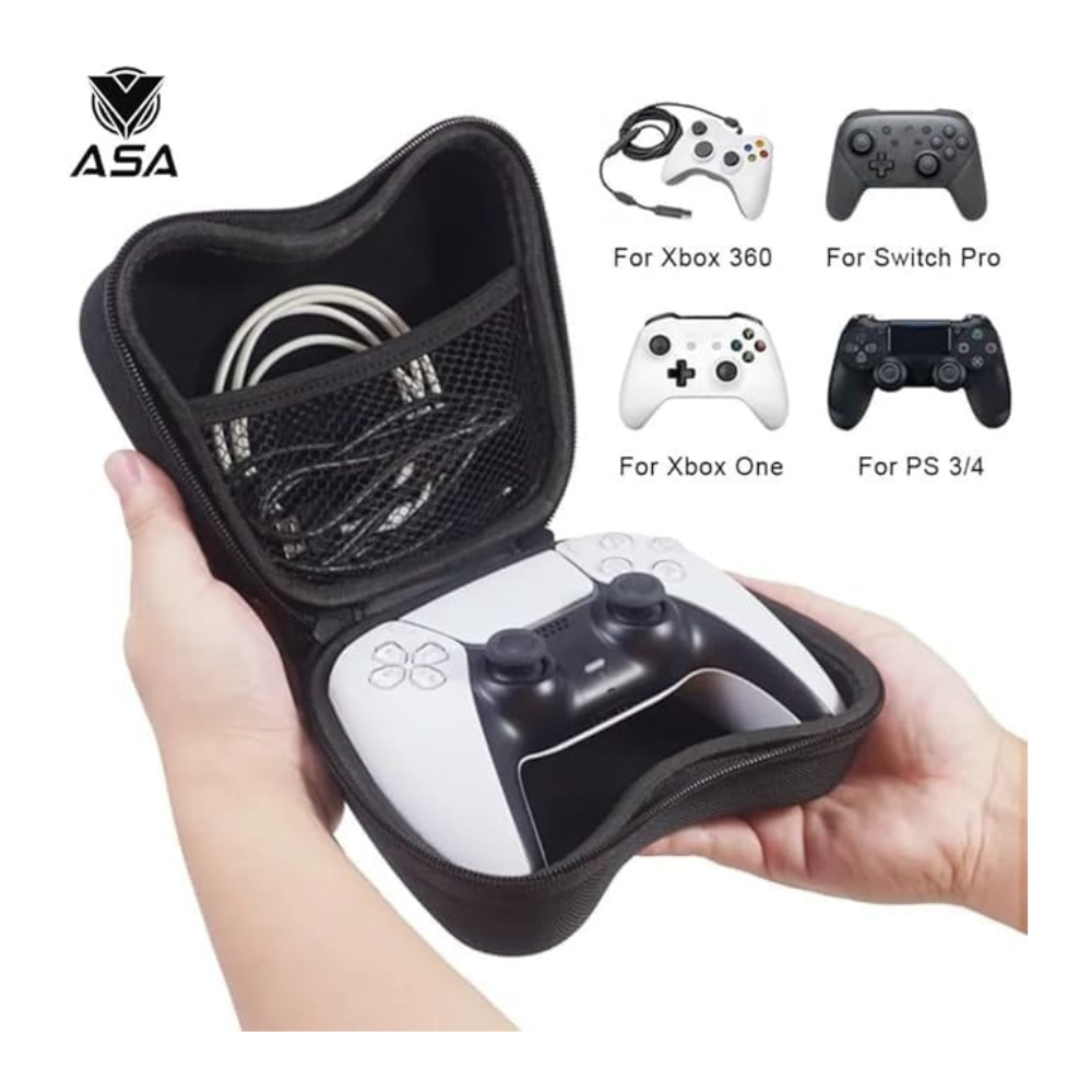 حقيبة يد محمولة من ايه اس ايه لتخزين وحدة تحكم جهاز 5 Playstation باللون البني . مزودة بغطاء واقي صلب مقاوم للصدمات مع جيب داخلي لشاحن وحدة تحكم دوال سينس اللاسلكية 2023
