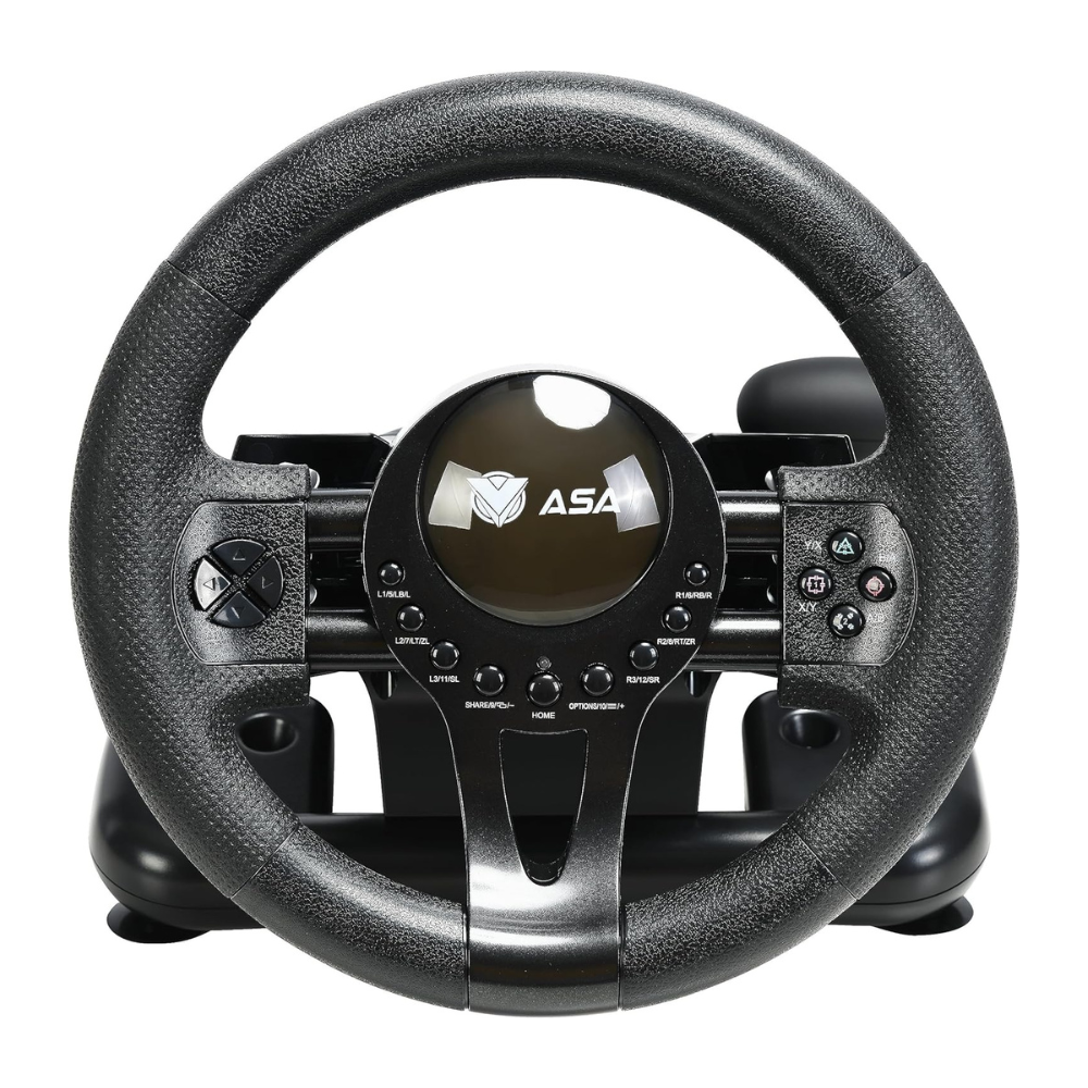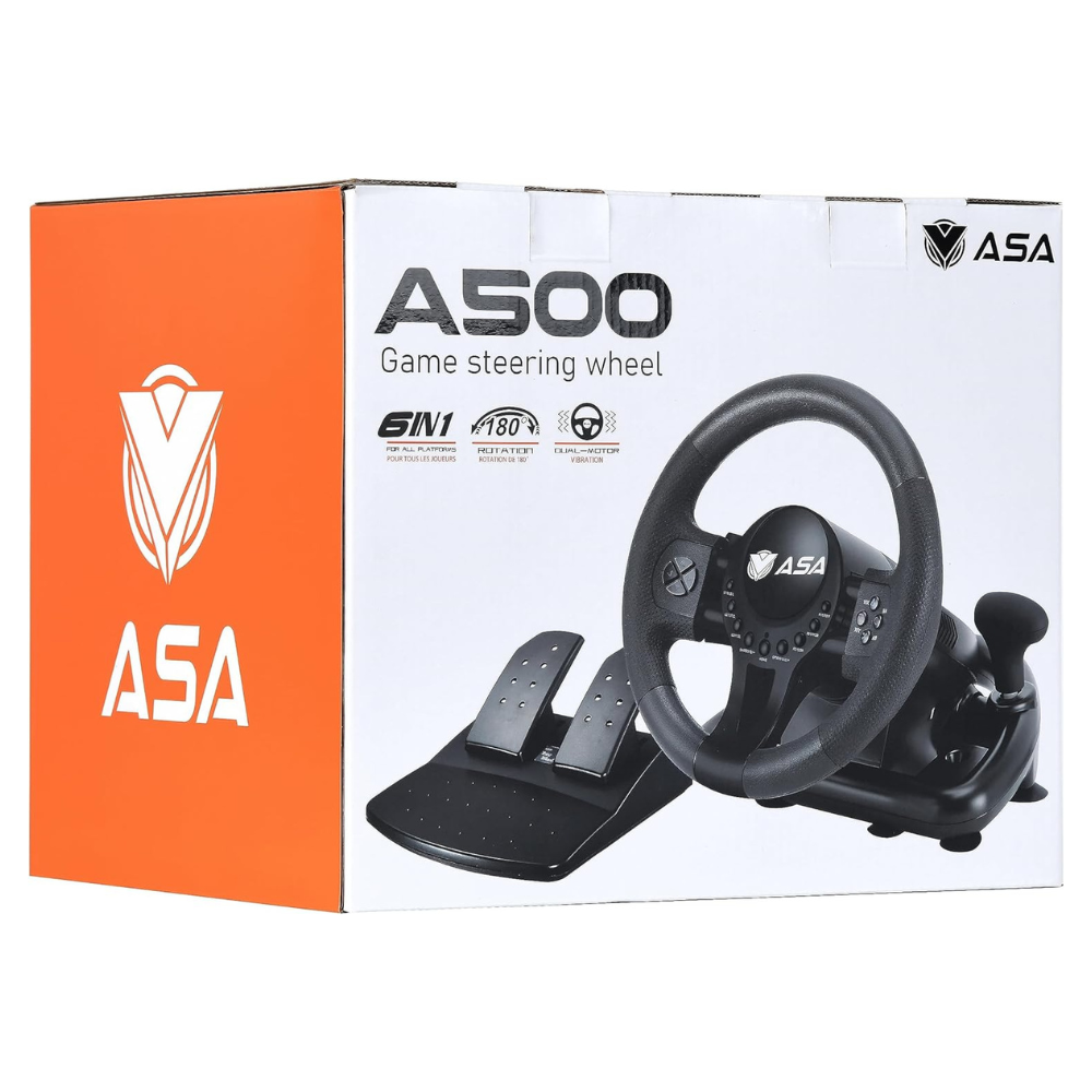 عجلة التحكم في سباقات السيارات ايه اس ايه A500 - دوران 180 درجة مكونة من عجلة قيادة ودواسات، مزودة بمنفذ يو اس بي عمومي، ملائمة لالعاب الكمبيوتر، وPC, PS3, PS4, Xbox One, نينتيندو سويتش