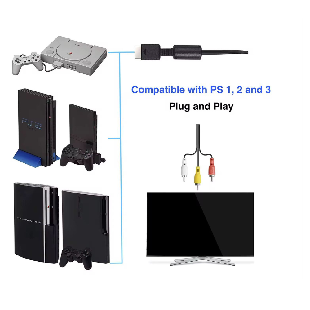 - كابل الصوت متوافق تمامًا مع بلاي ستيشن 1 وبلاي ستيشن 2 وبلاي ستيشن 2 سليم وبلاي ستيشن 3. قم بتوصيل جهاز بلاي ستيشن الخاص بك بالتلفزيون والشاشة باستخدام مدخل ار سي ايه المركب، ونقل بيانات ايه في إلى وحدة تحكم بلاي ستيشن بلاي ستيشن باستخدام الكابل الخاص بنا، يمكنك الاستمتاع بالألعاب...