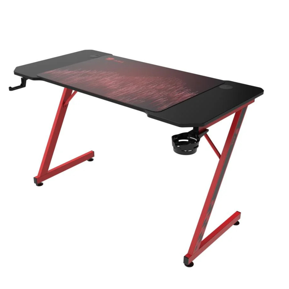 طاولة قيمنق بتصميم مميز و سطح بتصميم كاربون فايبر و ماوس باد وحامل كوب وحامل سماعة ومنظم اسلاك .المقاسات :العرض: 120CMالارتفاع: 75CMالعمق: 60CM