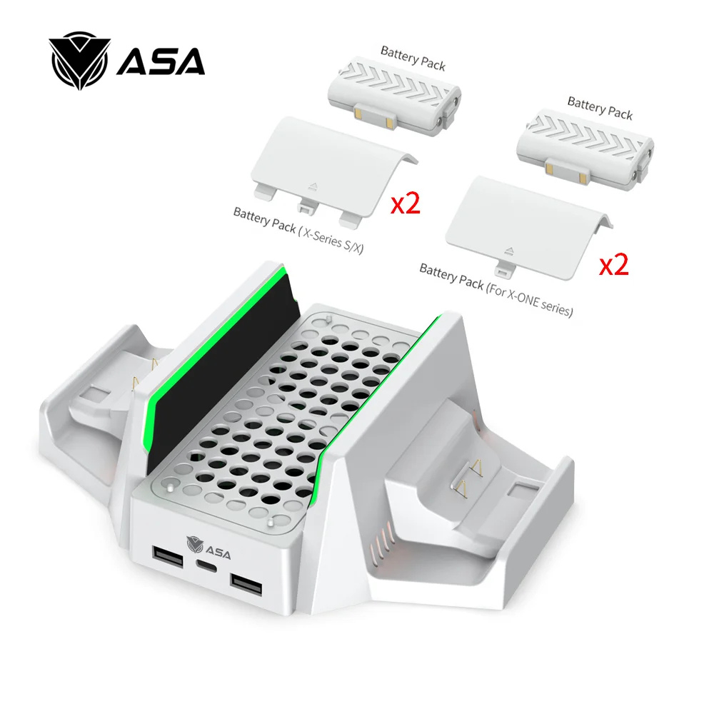 【حامل 3 في 1】مصمم حصريًا لجهاز Xbox Series S - يمكن لمروحة التبريد المطورة والحامل الرأسي أن تمنع وحدة التحكم من ارتفاع درجة الحرارة أثناء اللعب، قاعدة النمذجة الفريدة مع الهيكل المعدني تجعلها صلبة وتبقى قوية جدًا؛ يشحن ويعرض وحدتي تحكم؛ تمت إضافة 2 × حزم بطاريات وحدة تحكم 800 مللي أمبير في الساعة لجهاز Xbox و 4 أغطية بطارية (2 غطاء لوحدة تحكم سلسلة Xbox، 2 غطاء لوحدة تحكم Xbox one).