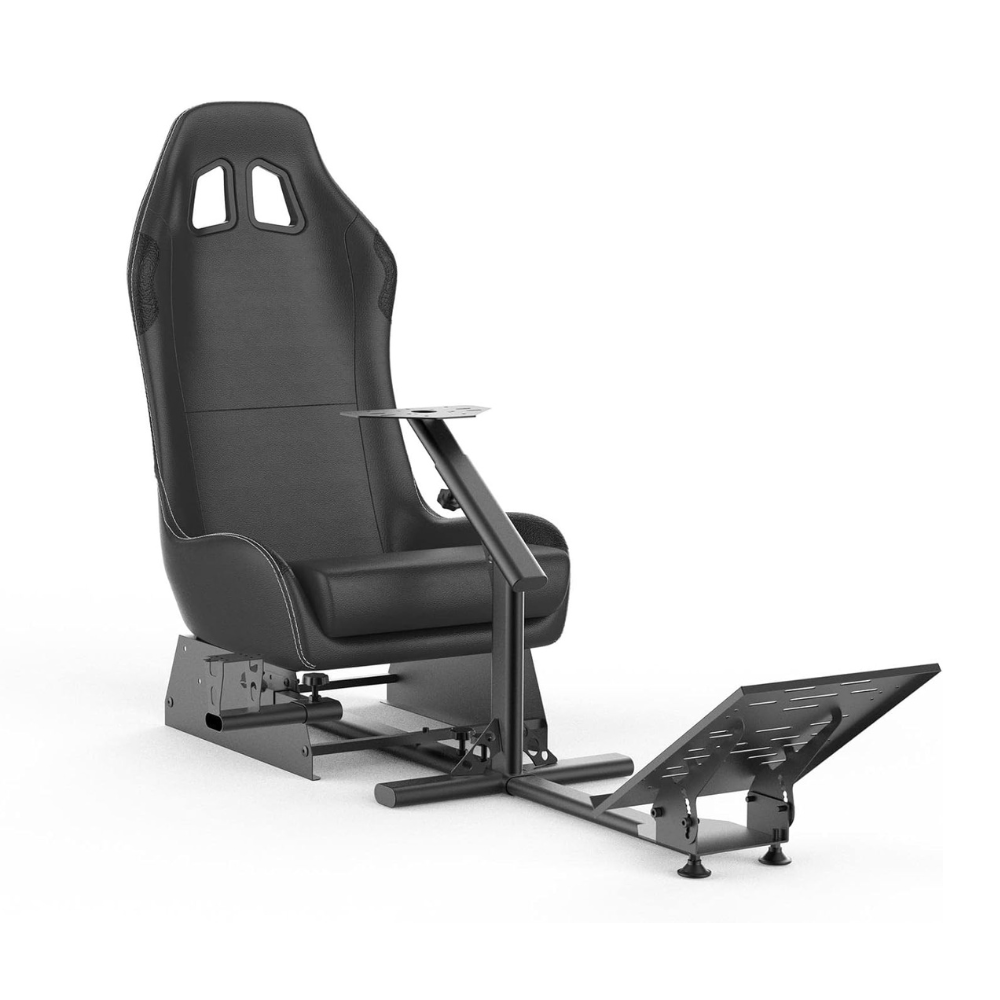حامل عجلة سباق مع مقعد العاب من لجميع اجهزة لوجيتك G923 وG29 وG920 وثرست ماستر وعجلات فاناتيك وشركات اخرى وXbox One و PS4 PS5ومنصات الكمبيوتر (اسود/رمادي)، سبيكة صلب