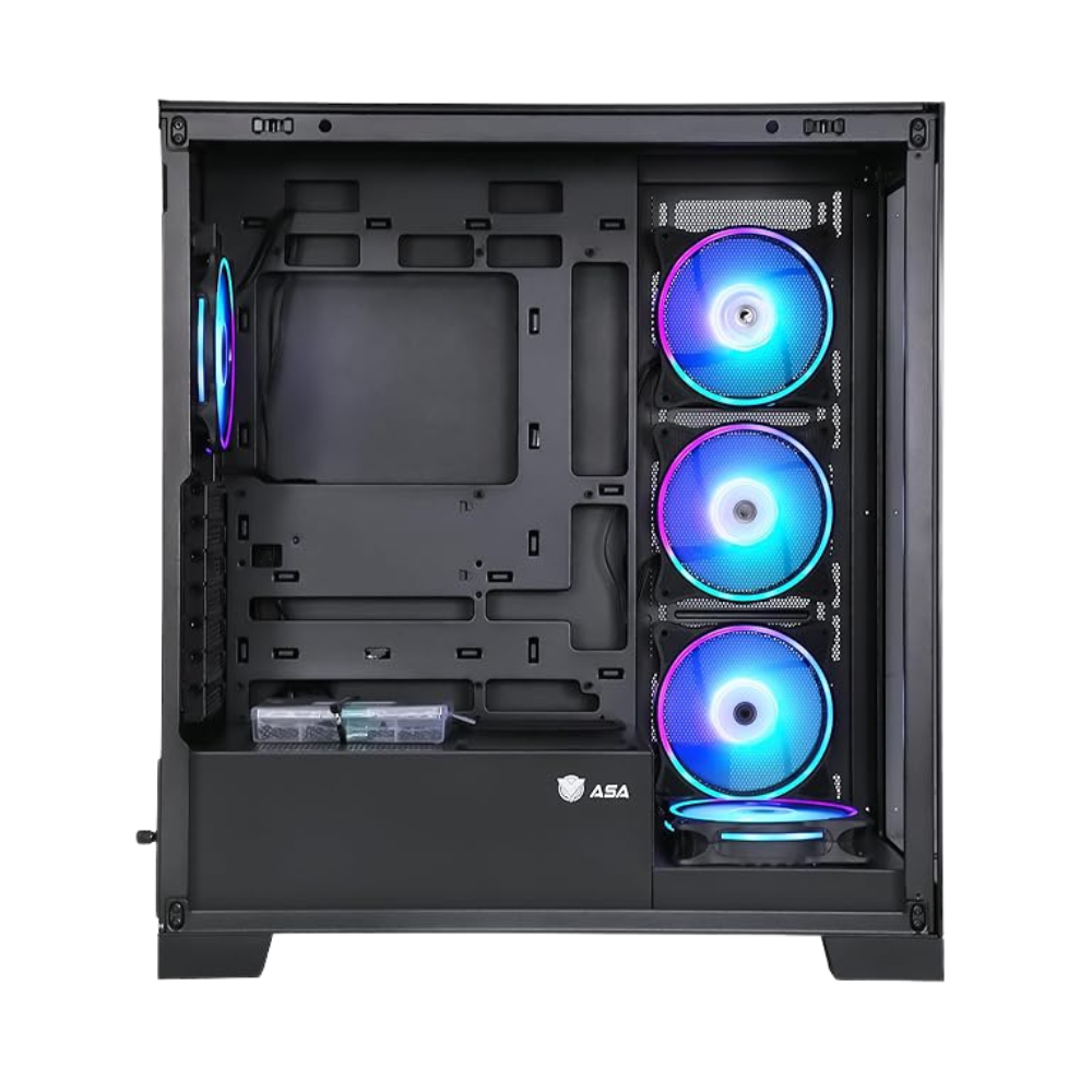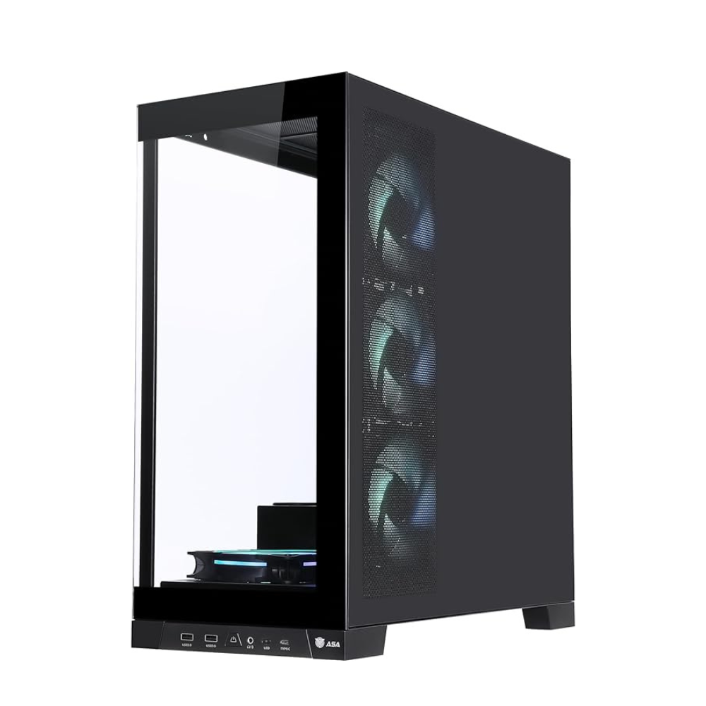 - لوحة جانبية من الزجاج المقوى لعرض أجهزتك القوية وإضاءة الفضاء اللوني ار جي بي